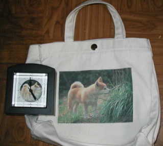 | 左は東京・渋谷東急百貨店 1階にあるハチ公ショップで 購入した布手提げと置時計 です。同じ赤の仔犬絵柄。 これ以外はデフォルメした ぬいぐるみなど。まだその お店のサイトはありません。 右はハチ公の故郷秋田大館 で買ったもの。駅前の観光 案内所です。 |
