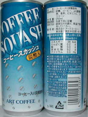 | 左はテーマ別の炭酸入り 缶コーヒーと重複掲載 コーヒーソーダ1979年 いずれも 2005年1月更新で追加 右は05年10月更新に て追加。驚きの再登場 05年7月4日付けのよう です。新宿西口地下の店 舗で購入。能書きのポス ターも。歴史や特許の話。 1975年初版はコーヒー スカッシュの商品名でした。 リンク先の山崎幹夫氏著書 に画像があります。 |