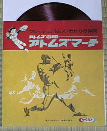 アトムズ・マーチ(オフィシャル応援歌)のソノシートです。サトーハチロー作詞 岩代浩一作曲、ボニージャックス歌。歌詞にヤクルトと一言も出ないので1969年限りと思います。 企画制作:アトムズ後援会(当時、日本橋本町)