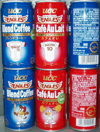 2005年3月登場 新球団発足で東北 6県限定発売。 東北楽天ゴールデ ンイーグルス缶 UCCコーヒー 12月もまだ赤い ほう仙台では販売 確認 06年1月更新で 掲載 |
