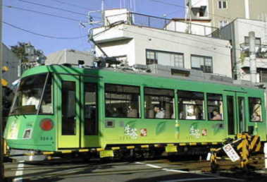 東急世田谷線 左はキリン生茶 2001年5月 右はQOO二代目 2002年9月 下高井戸にて |