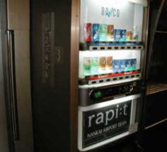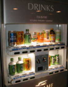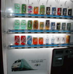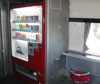 | 寝台特急「なは」の座席車の喫煙室にある自販機。2003年撮影。 管理は南九州キャンティ ーン(熊本市)車両の管 理はJR九州の鹿児島。 運転区間は 新大阪から西鹿児島 |